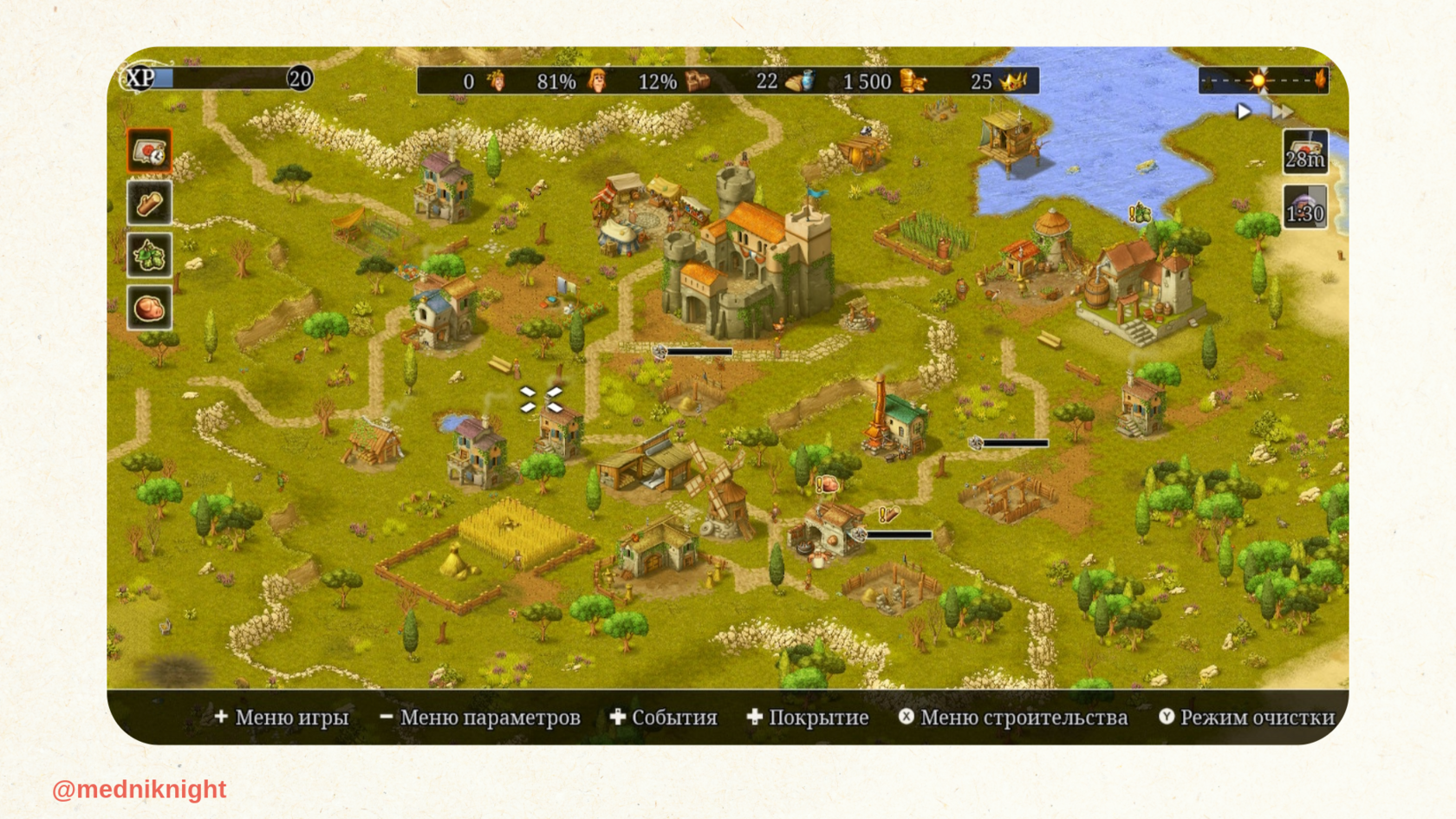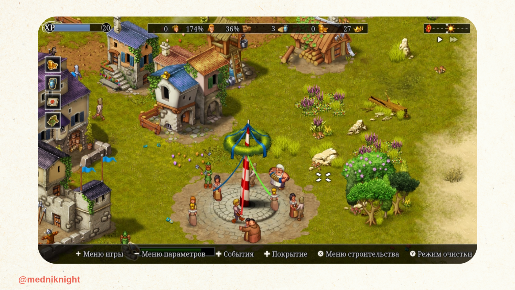 Как вы можете заметить, воспоминаний о самой процедуре у меня не осталось, зато любовь к простенькой мобильной игре спряталась где-то в глубине моего подсознания, чтобы около года назад вернуть меня к консольной версии Townsmen — A Kingdom Rebuilt (далее речь пойдёт именно об этой версии, но без повторного перепечатывания длинного подзаголовка).