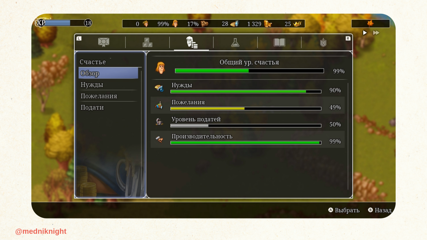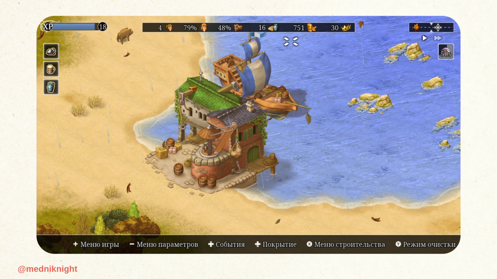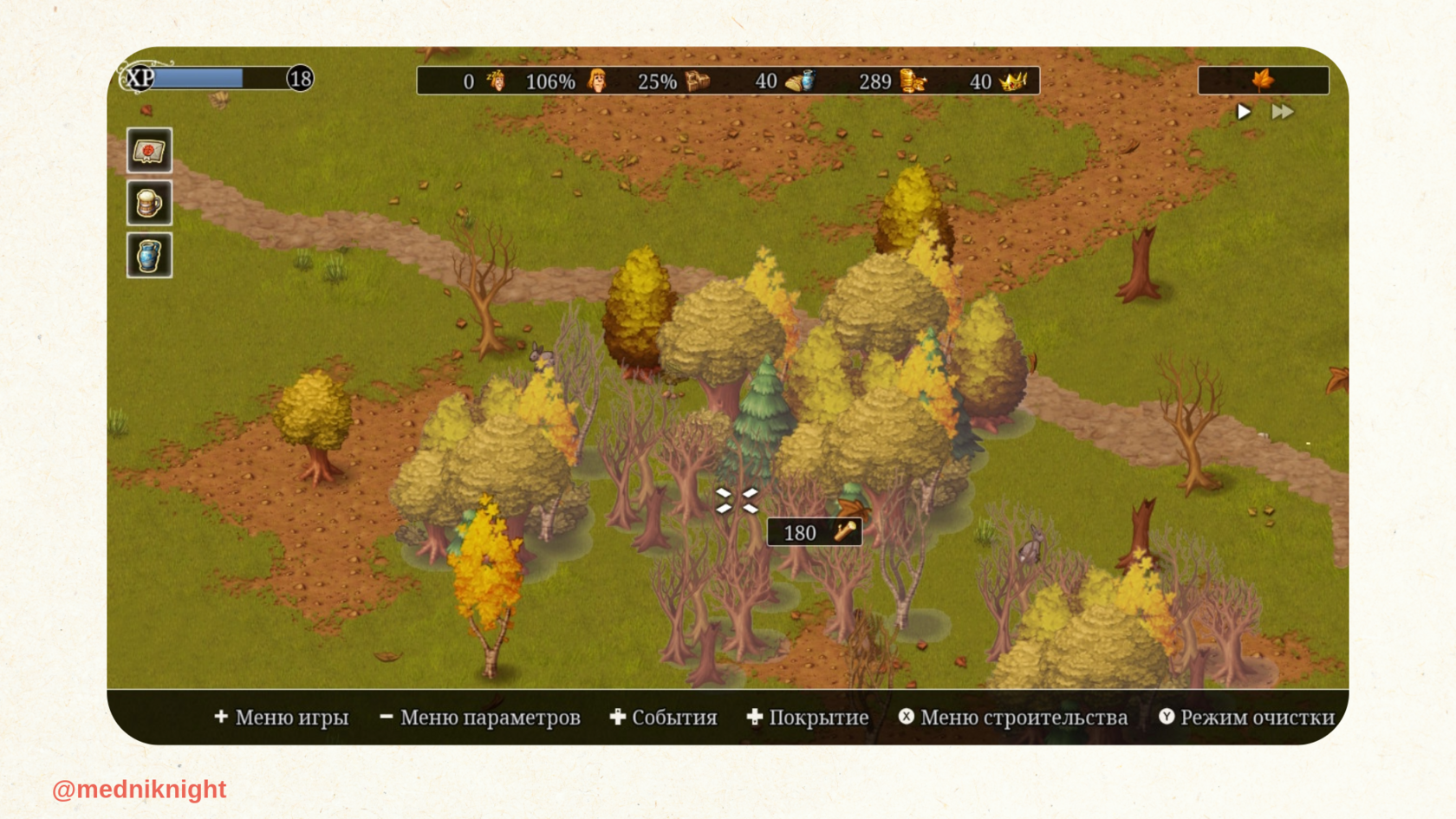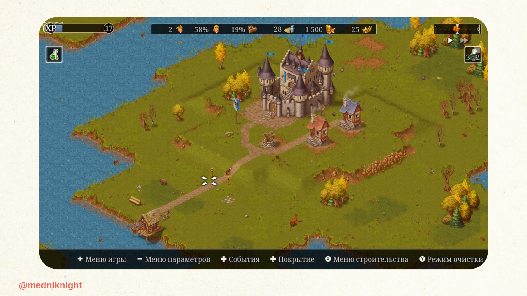 Я заново знакомился с Townsmen на Nintendo Switch и теперь считаю эту платформу наилучшей для проекта. Как пример, впервые игру на портативной консоли я запустил в поезде до всё того же Воронежа. Так незаметно пролетели несколько часов дороги, пока я проходил кампанию и баловался в бесконечном режиме.